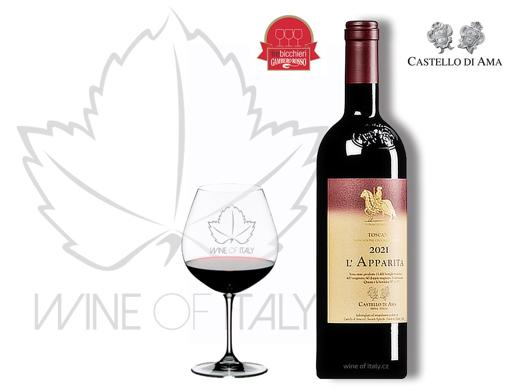 první čistokrevný Merlot vyrobený v Toskánsku, je ikonickým vínem od své první sklizně v roce 1985. Enolog Marco Pallanti profiluje Castello di Ama také mezinárodními odrůdami, se kterými sklízí značné úspěchy. Vinice L'Apparita je uznávaným klenotem světové enologie.