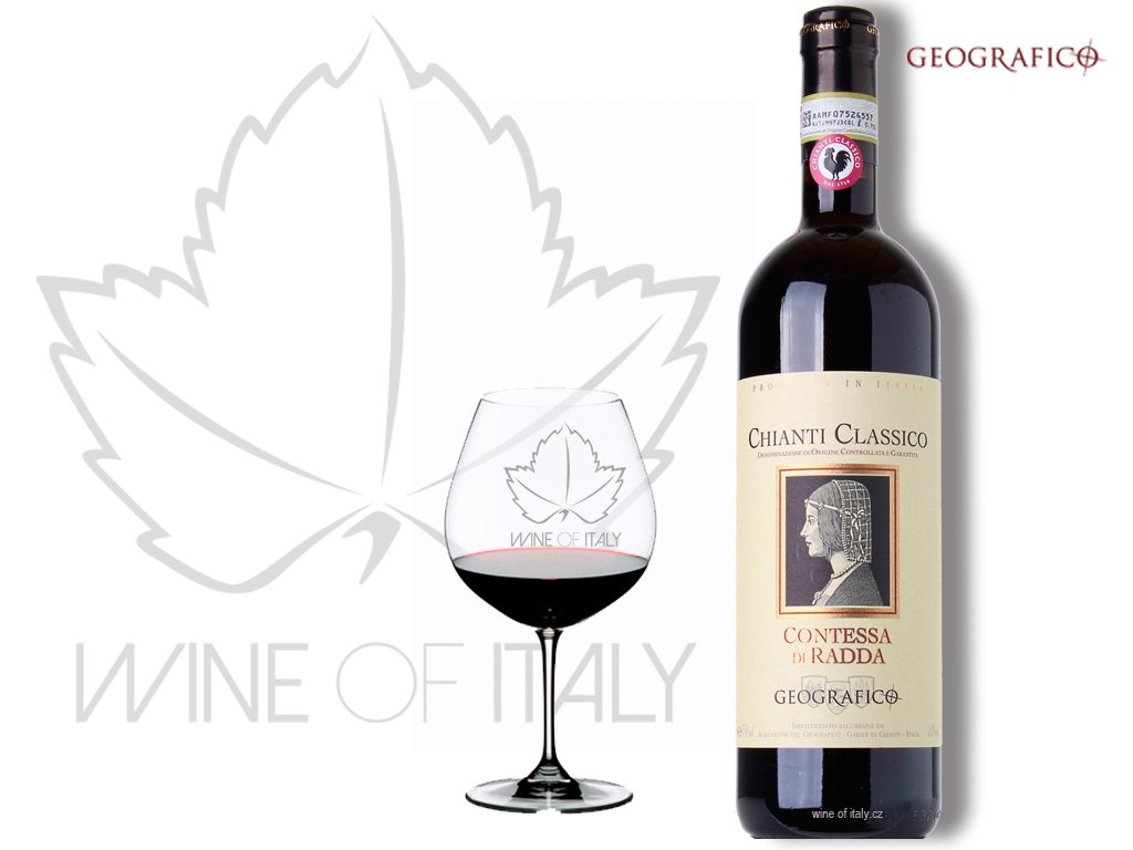 V srdci Toskánska, v oblasti historického Chianti Classico, se rodí víno z vinařství Geografico. Hrozny pro Contessa di Radda pocházejí z vinic v katastru města Radda in Chianti, které je známé svým terroir a ideálními klimatickými podmínkami pro pěstování odrůdy Sangiovese, dominantní odrůdy tohoto červeného vína. Sangiovese se zde pěstuje konvenčními metodami. Pro dosažení dokonalé harmonie je v menším množství přidán také Merlot (5 %).