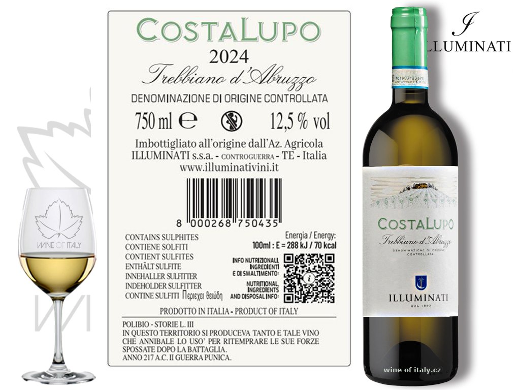 Controguerra Bianco COSTALUPO DOC je pečlivě zpracovaná typická odrůda pro region Abruzzo Trebbiano d´Abruzzo (100%)