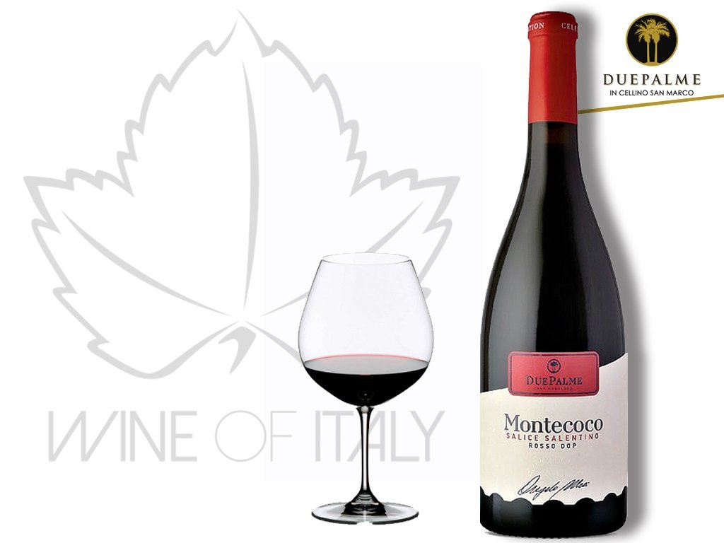 Due Palme přináší Salice Salentino Rosso MONTECOCO DOP, charakteristické jižanské červené víno, kde se potkávají dvě původní odrůdy z italského "podpatku": Negroamaro a Malvasia Nera. Toto víno okouzlí rubínově červenou barvou s fialovými odlesky a vůní, která jasně odhaluje příjemné aroma divoké švestky, ostružin, lesních jahod s diskrétními praženými tóny. V ústech je víno harmonické, elegantní a zaručuje nevšední zážitek