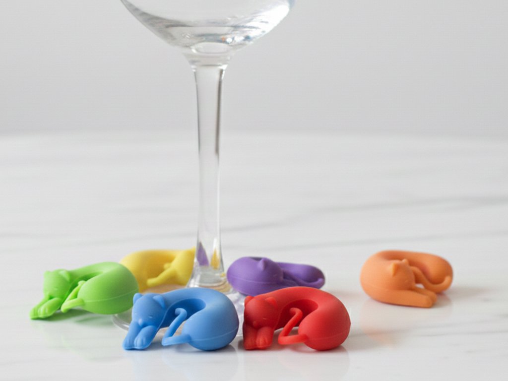 Díky značkám na sklenici na víno je snadné je rozlišit, když jste na večírku se svými přáteli. Silikonový prstenec identifikuje každého hosta .